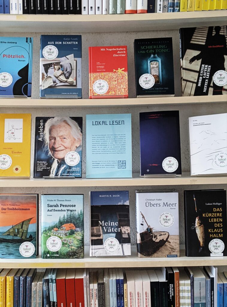 Das Autor*innen-Netzwerk «lokal lesen» nimmt sich zum Ziel, lokales Literaturschaffen sichtbarer zu machen. Die Buchhandlung Labyrinth schätzt es sehr, dass «lokal lesen» bei uns tagt und mit einem Regal präsent ist.