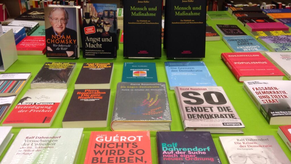 Der Büchertisch aus unserer Veranstaltung im Stellwerk am 9. Oktober zur Krisenbewältigung angesichts von Corona nimmt seinen Ausgangspunkt mit der vor zwei Jahren im Velbrück Verlag publizierten Dissertation von Jonas Heller (Uni Frankfurt) «Mensch und Massnahme». Das Buch hinterfragt die Dialektik von Ausnahmezustand und Menschenrechte. Es ist ein grosser rechtsphilosophischer Diskurs in der Auseinandersetzung der […]