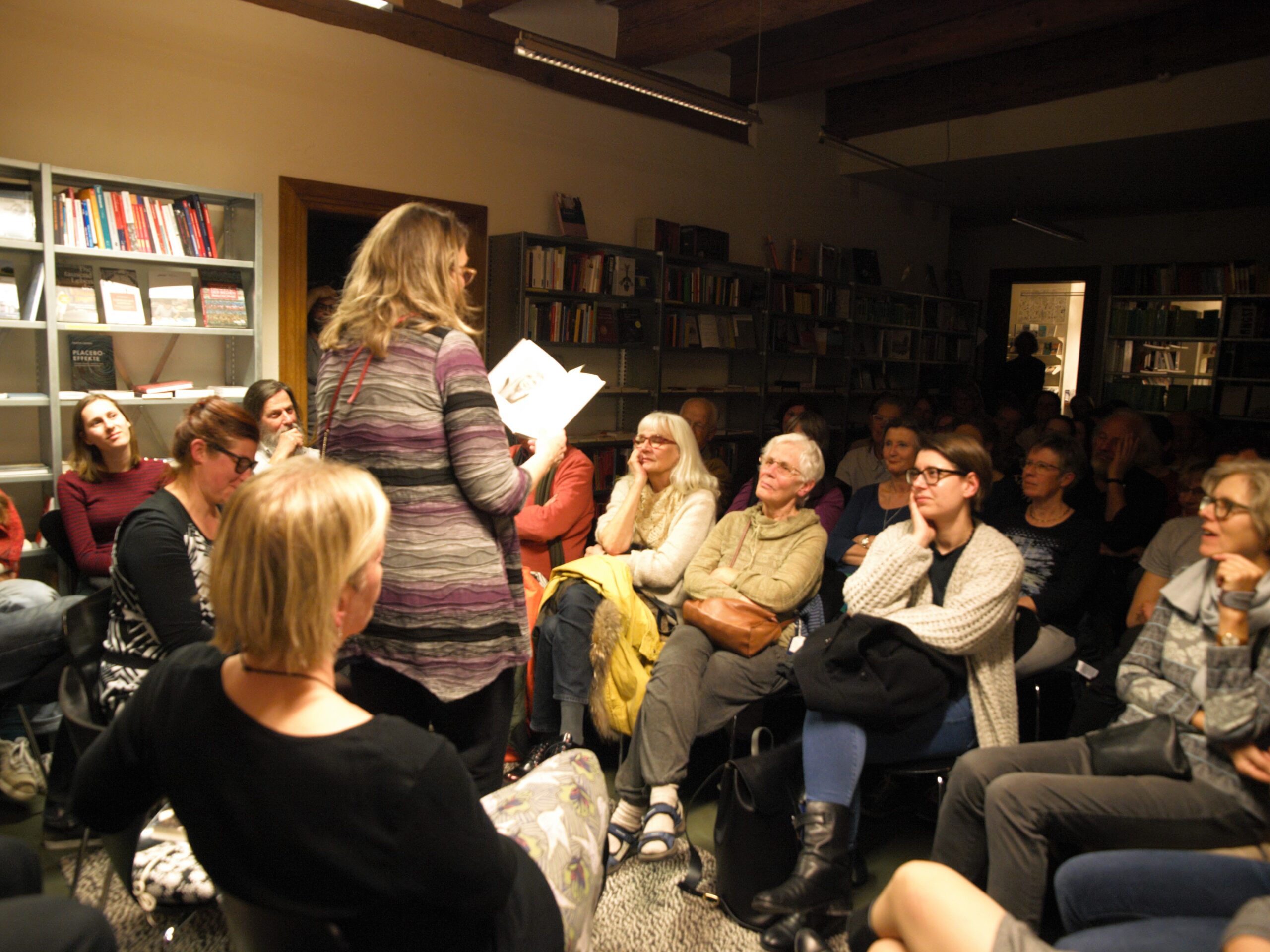 Am 26. Februar 2019 waren Steinunn Sigurðardóttir und ihre Übersetzerin Tina Flecken zu Gast bei uns. Steinunn Sigurðardóttir sprach über ihr neuestes Buch und dessen Hauptfigur Heiða und brachte uns eine einddrückliche und starke Frau näher. Tina Flecken gab tolle Einblicke in die Übersetzungsarbeit. Was auch nicht fehlte: Einige Zeilen wurden auf Isländisch vorgelesen. Hier einige Fotos (© Eline Elmiger) und Clips (© Marlies Alder):